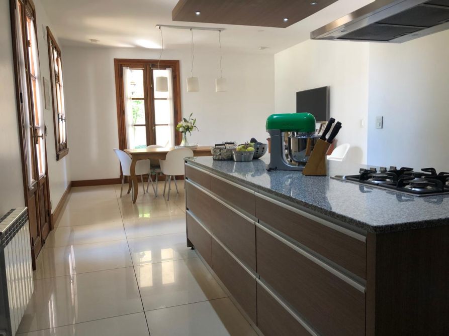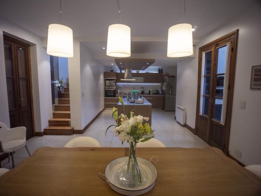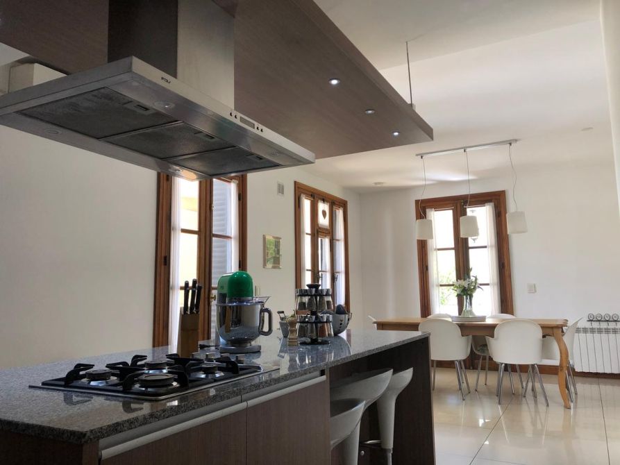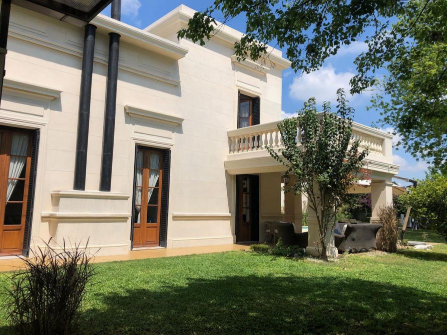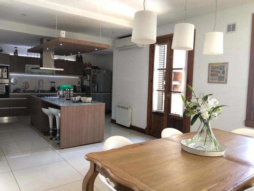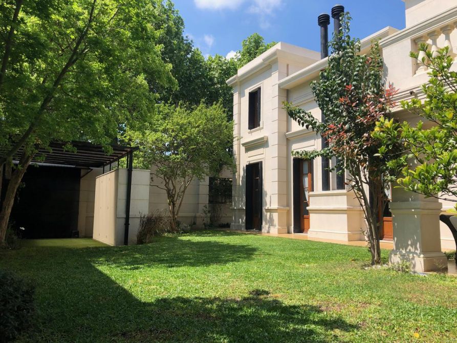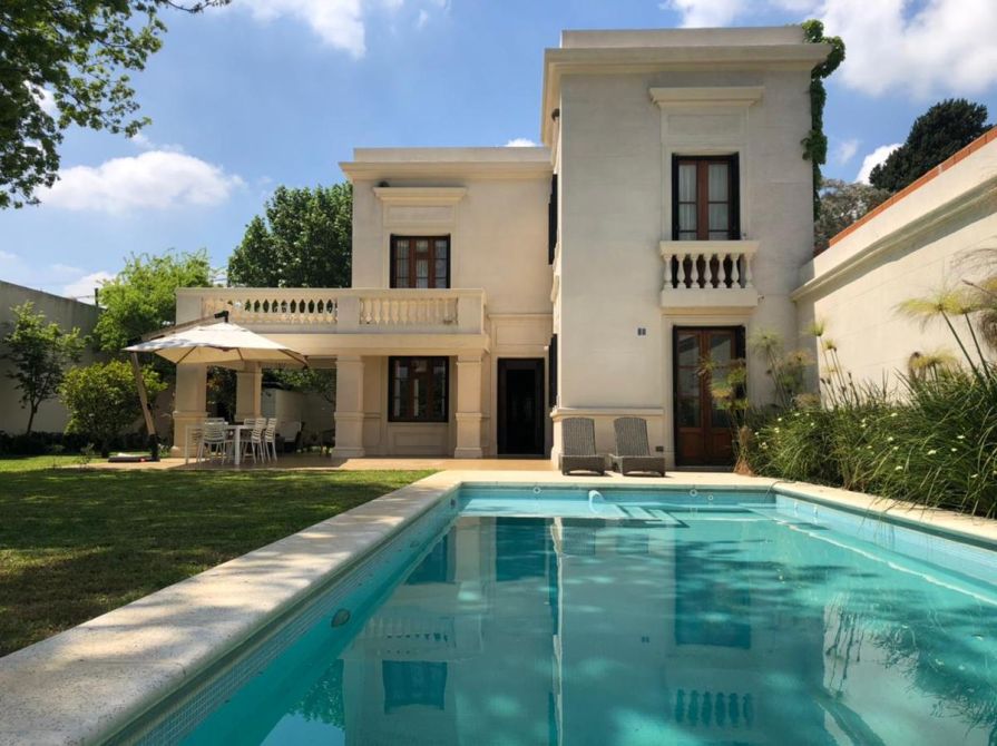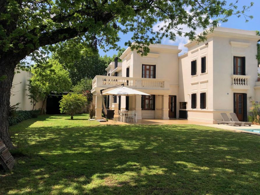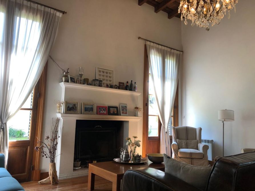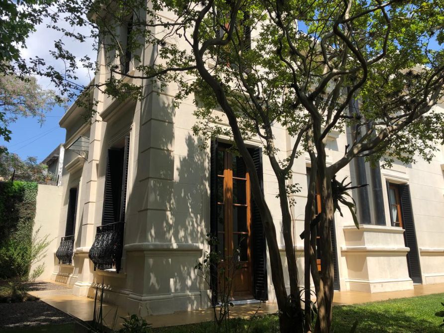 Gran Casona antigua construida en 1890 por ingenieros / arquitectos ingleses con paredes portantes de 45 cm, logrando asi un ambiente climatizado natural todo el año, fue restaurada, reciclada a nuevo y ampliada por el arquitecto propietario, logrando con éxito aplicar todas las técnicas aprendidas de restauración, ejecución de molduras, silleria, ornamentaciones, revestimientos de piedra parís, etc, de edificios históricos de Buenos Aires como ser el Alvear Palace Hotel , incorporando la carpinteria de 3 mts de alto de cedro de 5 cm de espesor del mismo (cedida por el hotel) a la casona, logrando asi una fusión de historia Inglesa, patrimonio histórico Argentino y toda la modernidad y tecnología actual del siglo XXI. La casona se recuesta sobre una de las medianeras orientando asi sus 3 fachadas principales al este , norte y oeste logrando captar la luz de de todo el dia, la cual llena de luz natural todos los ambientes de la casa generando una ambientación inigualable. La casona posee al frente un paredon de 4 mts de altura dando privacidad, sobriedad exterior y seguridad, además todas las carpinterias exteriores poseen celocias metálicas y sistema de seguridad con sensores de apertura cableado por cañeria interior. La climatización adoptada es por radiadores y caldera Baxi – Triangular en todos los ambientes y Splits frio / calor BGH y Trane. Además posee un hogar a leña con doble tiraje en el living. El agua caliente es por caldera Rheem de 160 lts. La instalación sanitaria se realizo toda nueva con cañeria termofusión aquasystem y desagues Tigre y Awaduct.