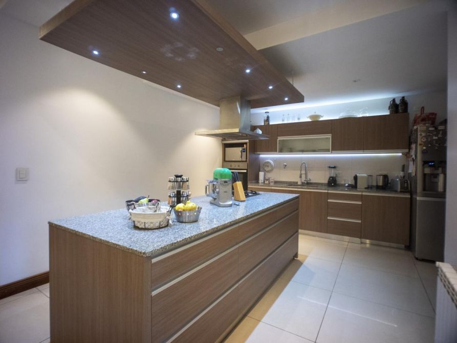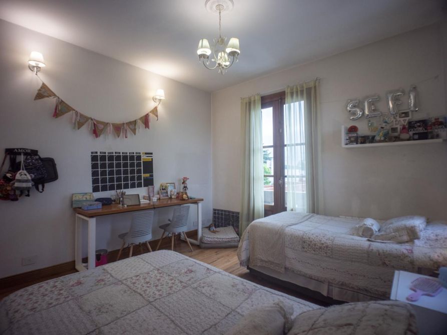 La instalación eléctrica se secciono en diferentes circuitos separados por área y todos separados por iluminación del de tomas corrientes y de los equipos de aire y de motores, cada uno con su disyuntor y térmica schneider con cables dimensionados y normalizados argenplas. La cañeria de cable, tv , te , alarmas se encuentra toda embutida , sin cañeria a la vista. La piscina es de hormigon armado de 4 x 11 mts por 2,50 mts revestida en venecita , playa y reposera humeda y jets de hidromasajes, calefaccionada , todo realizado por Perpool y en garantía. La parquizacion se realizo con panes de grama bahiana y riego automatico por aspersores abastecidos por bomba sumergible a 60 mts. La cochera con porton automatico con acceso para varios autos y amplia baulera independiente de guardado. La distribución de la casa se pensó con un eje central que recorre toda la casa y los ambientes principales desembocan en el, partiendo con el Hall de acceso de 5 mts de altura, el Escritorio de 4 mts de altura con su Biblioteca en el piso superior y escalera independiente, el Living con hogar, de 5 mts de altura, el Play room con su área separada de video playstation de 4 mts de altura y Toilette de apoyo, todos ellos con piso de pinotea, el Comedor con porcelanato de 80x80 cm con salida a la Galería y Parrilla de acero inoxidable y la Cocina con sus muebles completos incluido el lavavajilla panelable Bosch, isla, desayunador, luego el área de servicio con su Lavadero y un Baño completo con griferia Noken y artefactos Ferrum con área de cambiado y doble ingreso desde el interior y el exterior junto al solárium de la pisicina.