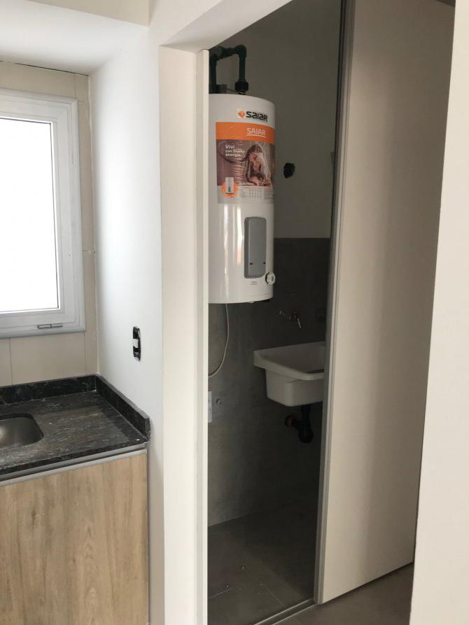 Departamento de 2 ambientes, con balcon, cochera techada, contrafrente, cocina amueblada, placard, sector de lavadero. A estrenar. Excelente ubicacion!