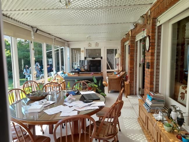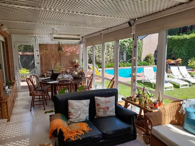 Porch; Hall de entrada con placard de recepción; Living-comedor con chimenea; 1 Baño completo; 2 Dormitorios con muy buenos placards (uno de ellos con otro Baño en suite); Estupendo Jardín de invierno apto para lugar de estar y Comedor Diario totalmente integrado con el jardín; Escritorio; Cocina muy bien equipada; Lavadero; Play-room con 1 Baño y Parrilla interna. Garage para 1 auto y Cochera para otro.