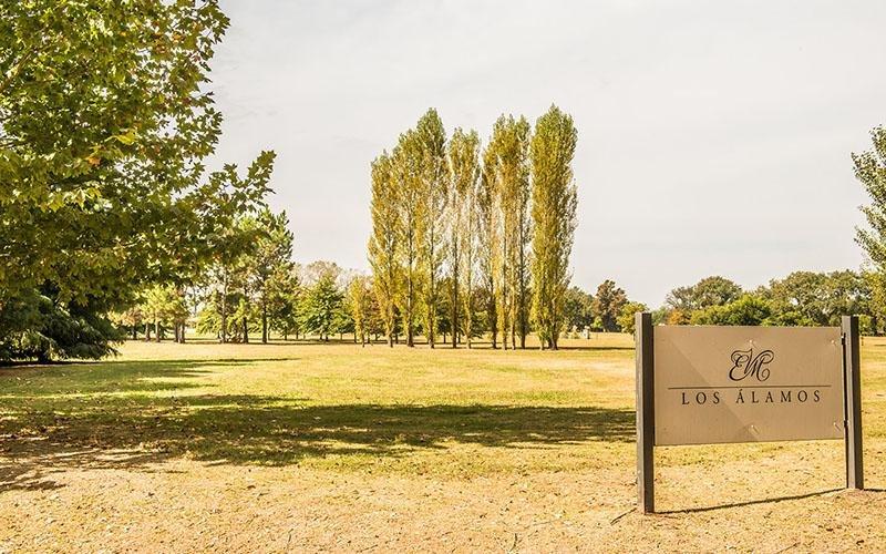 Se accede por una avenida principal de agregado pétreo, que se destaca por su forma cóncava que termina en una antigua avenida de inmensos plátanos. Con amplios terrenos de hasta 9.000 m², Los Álamos cuenta también con algunos edificios originales de la época y un lugar privilegiado, a pasos del histórico casco principal.
