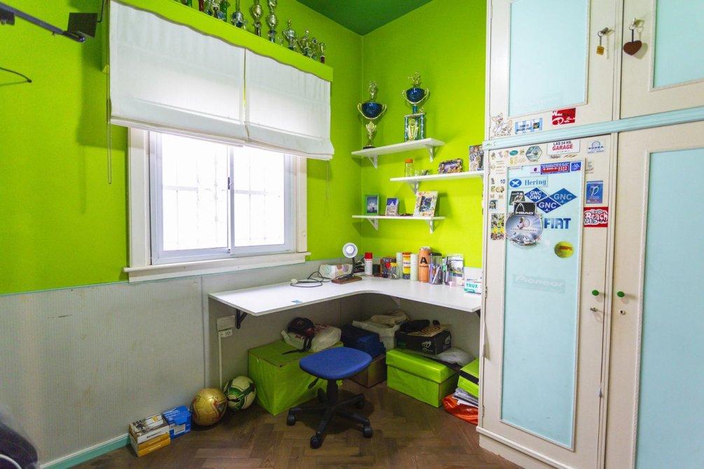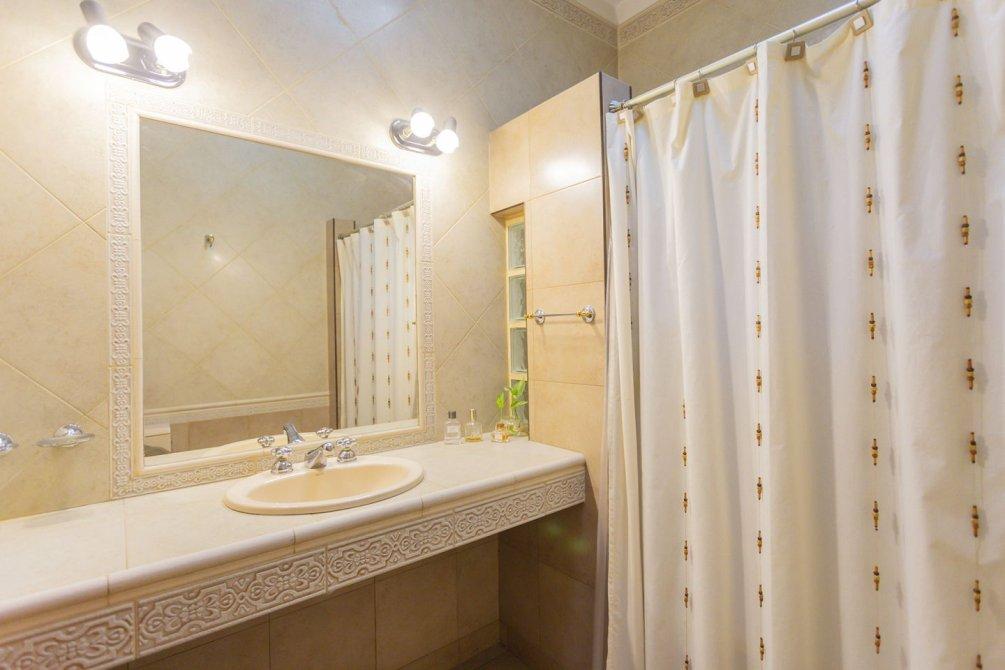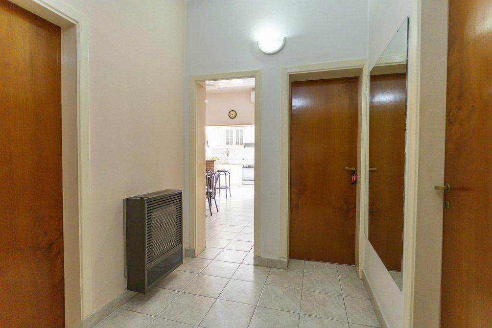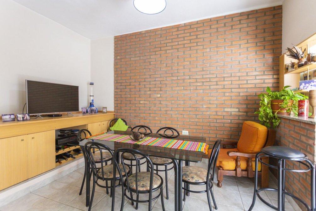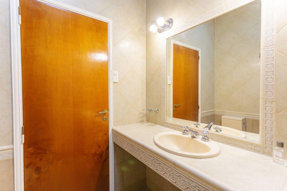 En el interior, se destaca un luminoso living con pisos cerámicos, que conecta mediante un pasillo distribuidor a tres dormitorios (uno actualmente utilizado como escritorio) y dos baños completos con bañera.