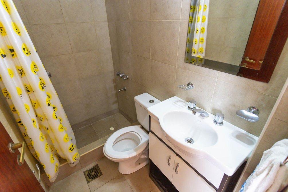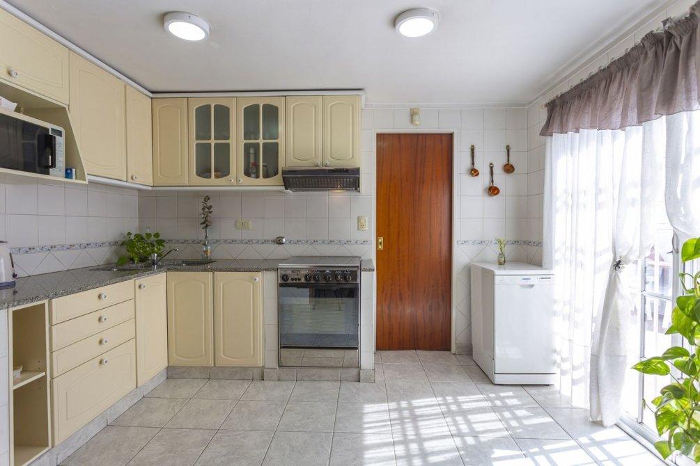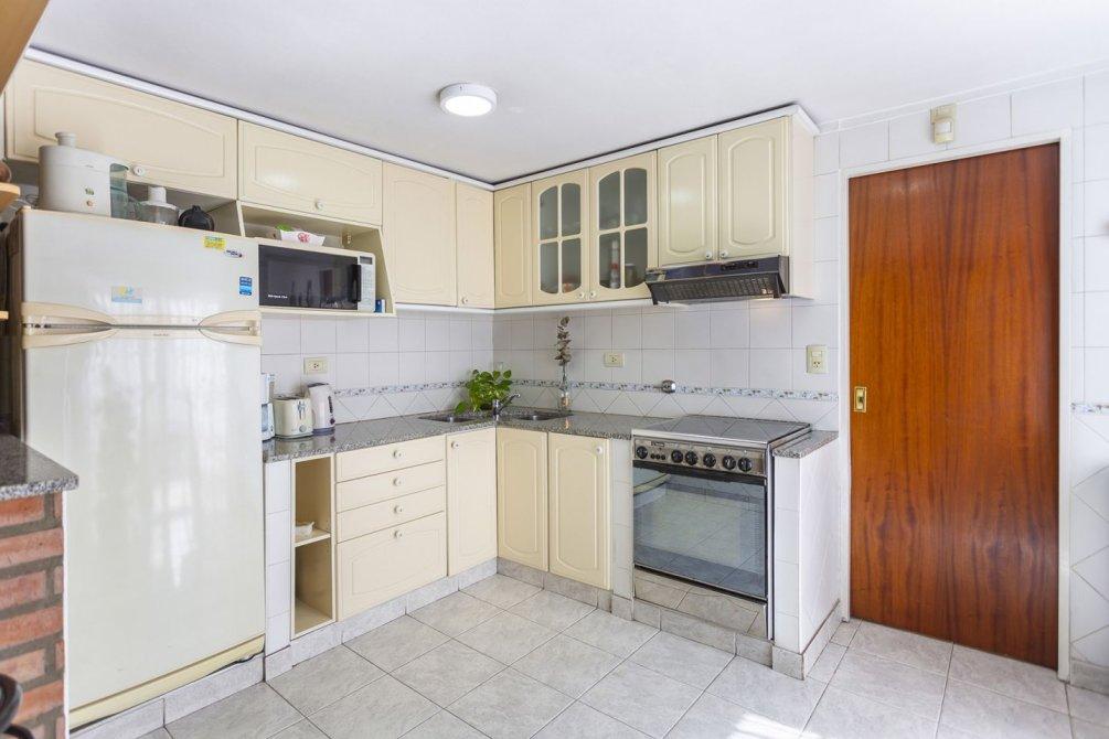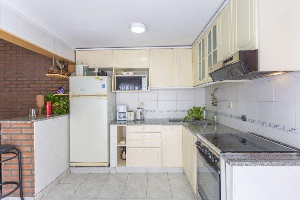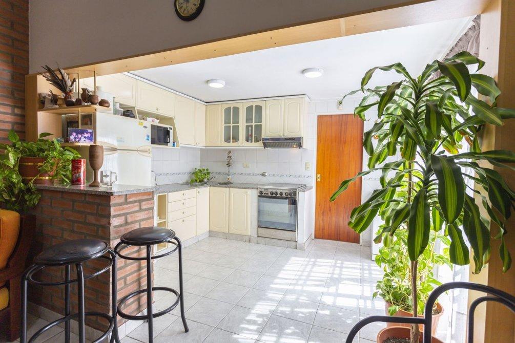 El área social está compuesta por un cómodo comedor diario y una cocina amplia con barra desayunadora, equipada con muebles bajo y sobre mesada y extractor, ofreciendo excelente iluminación natural.
