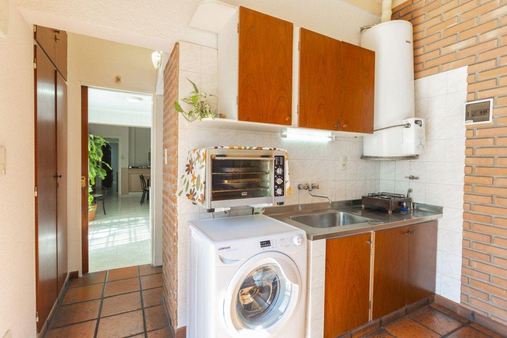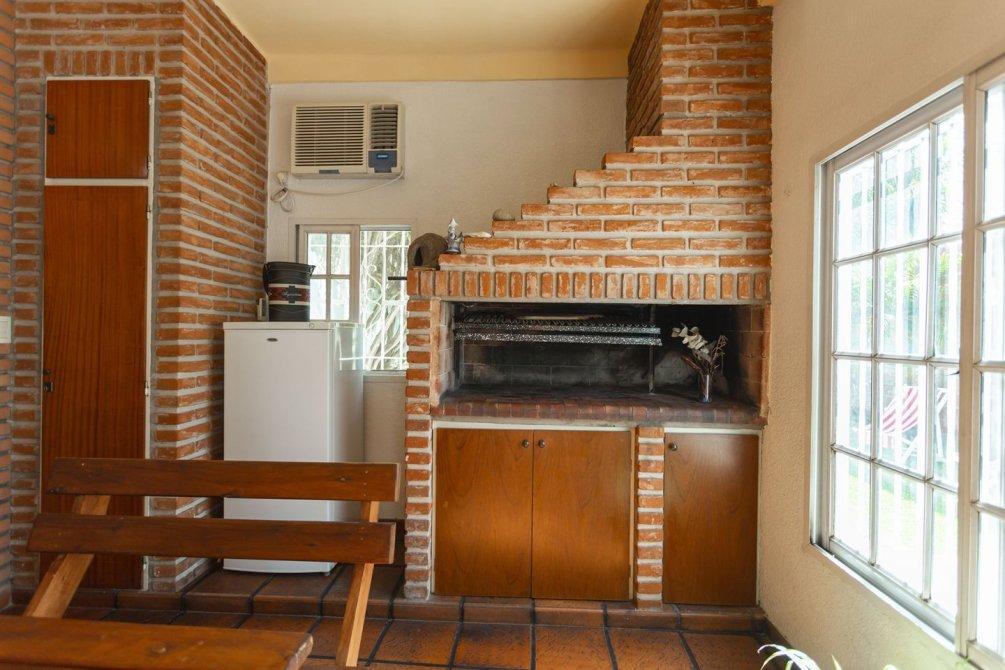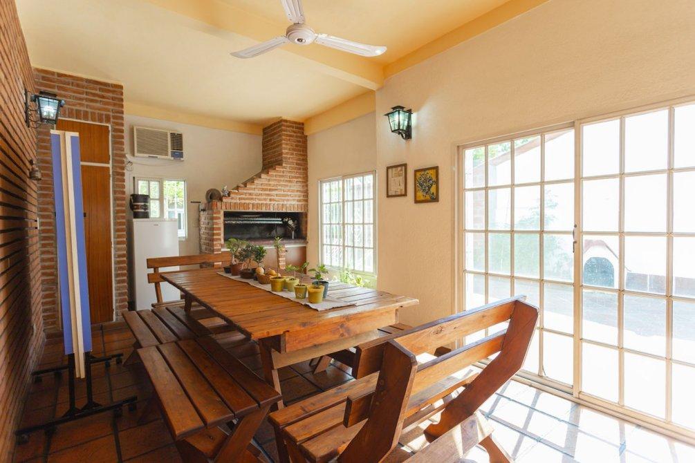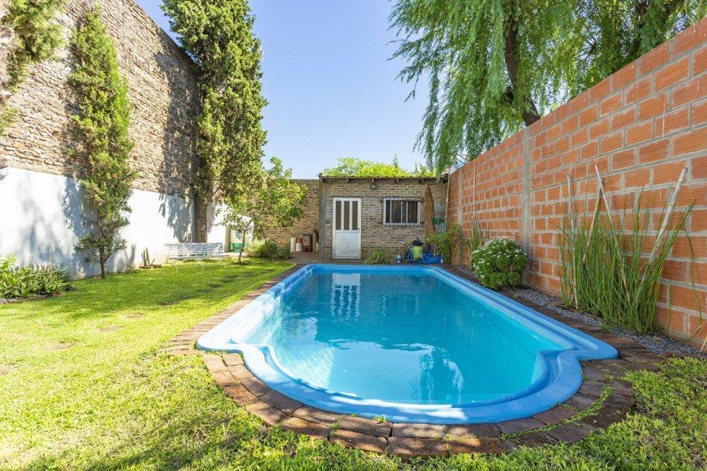 En la parte trasera, cuenta con un quincho cubierto con parrilla, muebles bajo y sobre mesada, sector de lavado con conexión para lavarropas y salida a un gran patio parquizado con piscina y espacio de guardado al fondo.