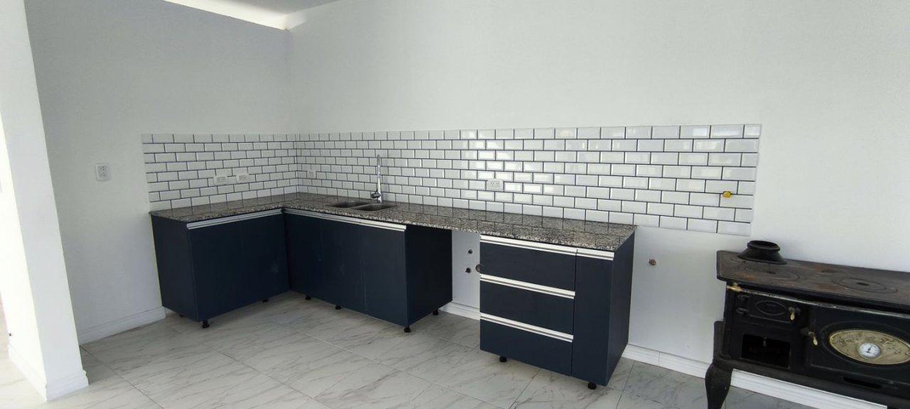 La cocina es amplia y moderna, integrada con el living comedor y con un cuarto de lavadero. La galería cuenta con una parrilla, mesada y bacha de lavado, con vista a la piscina de hormigón revestida con detalles de venecitas y luces.
