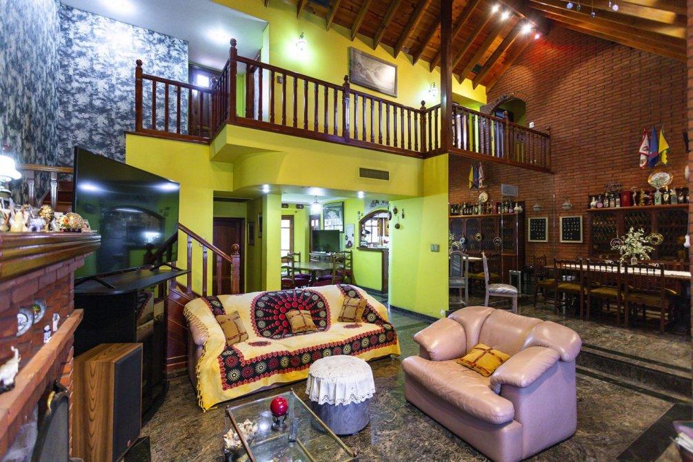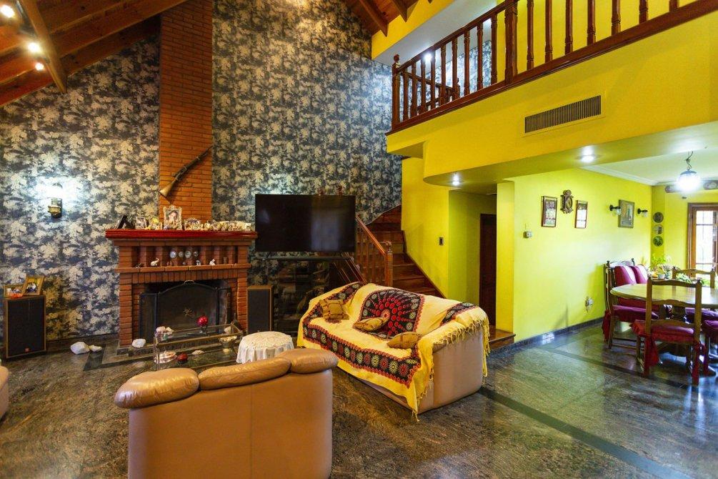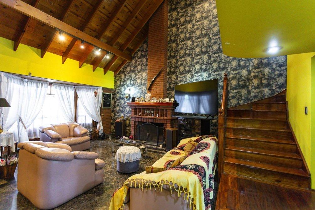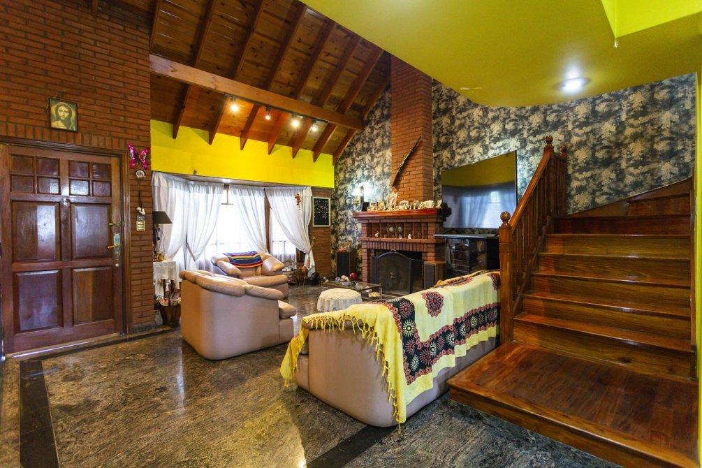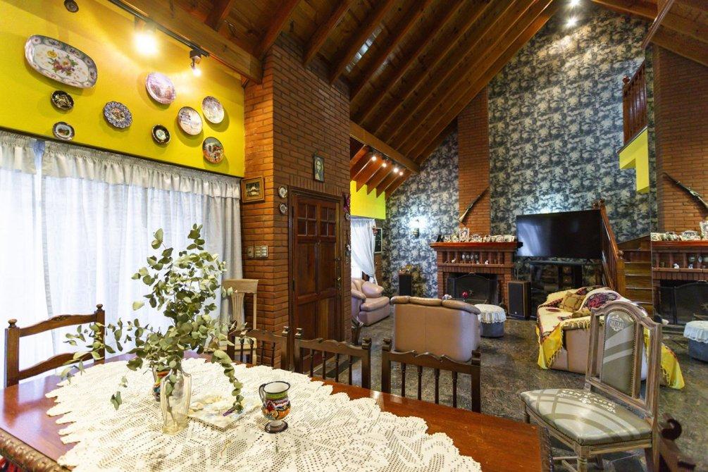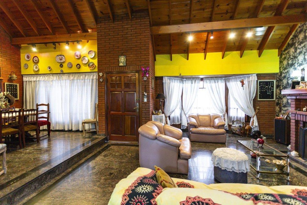 En planta baja se destaca un amplio living con hogar a leña de tiro natural, un comedor diario con techo en doble altura y un segundo comedor con cocina semi integrada, equipada con muebles bajo y sobre mesada, barra pasante, horno y anafe empotrados. En este mismo sector se encuentra el lavadero cubierto, un escritorio y un toilette de recepción.