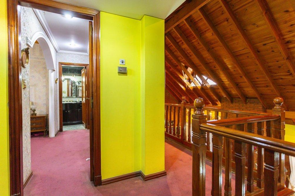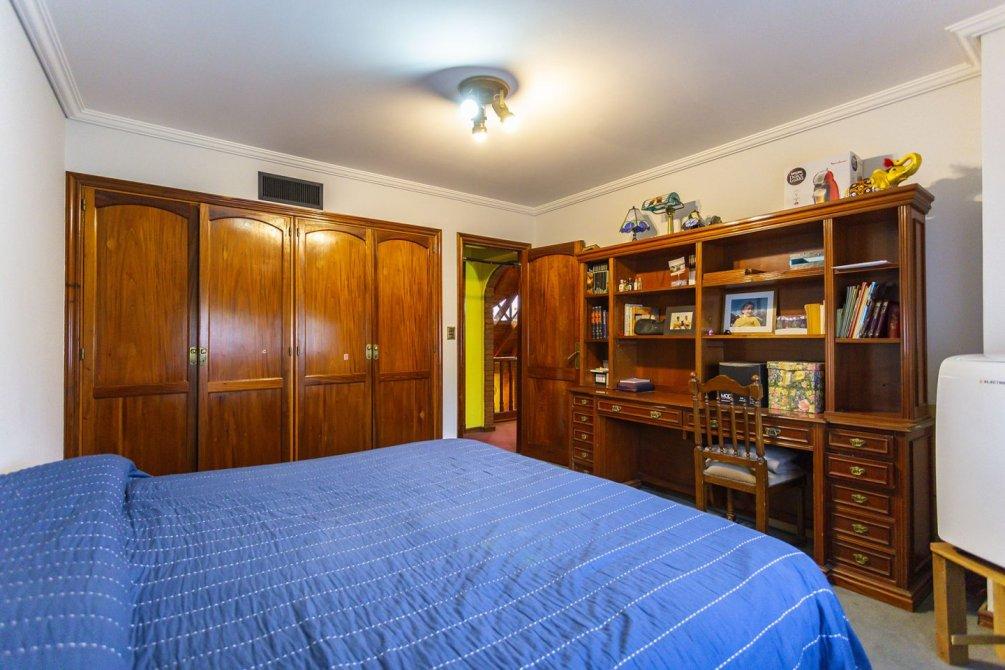 En planta alta, a través de un pasillo distribuidor, se accede a tres dormitorios con placard, uno de ellos con salida a un balcón terraza, y el dormitorio principal en suite con vestidor y baño compartimentado.