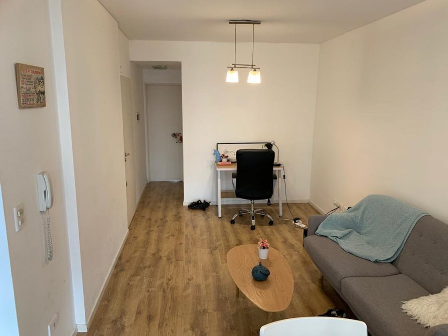 Pisos flotantes en todo el departamento y balcón al frente. Excelente estado. Aire acondicionado split