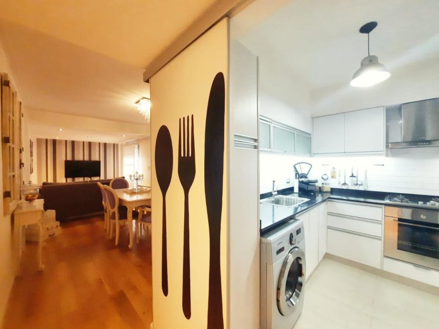 - Ingresando por la derecha nos encontramos con una hermosa y moderna cocina con mesada, bacha simple, bajo mesada y alacenas hechas a medida, horno embutido, anafe de 4 hornallas y extractor.