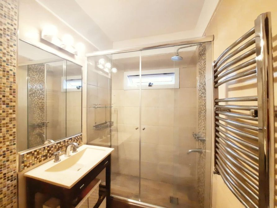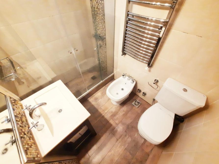 - Baño completo con vanitory, inodoro, bidet y ducha con mampara, con detalles de categoría.