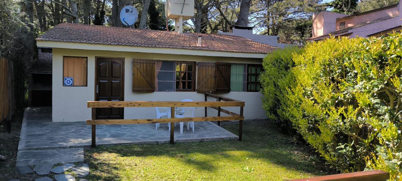 CASA CON PEQUEÑO PARQUE: cocina-comedor ( 2  sillon -cama se encuentran en  L )  lcd de 24" con conexion a dtv-baño, dormitorio matrimonial, wifi. deck con mesa y 4 sillas , parrilla. entrada de auto sin techar , parque pequeño  delante del deck. todo  equipado para 4 personas. tiene gas natural.