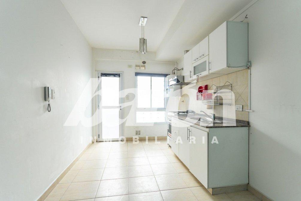 El departamento cuenta con doble acceso, tanto por el hall principal del edificio como por el patio privado, el cual se conecta directamente al living-comedor. Este ambiente se destaca por su luminosidad y su cocina integrada, equipada con muebles bajo y sobre mesada, artefacto de cocina, extractor y pre instalación para lavarropas. La provisión de agua caliente es mediante termotanque individual.