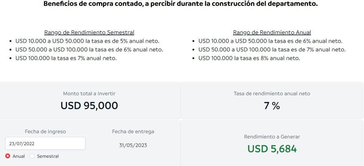 Pago contado tiene rentabilidad desde el momento uno de la inversión.