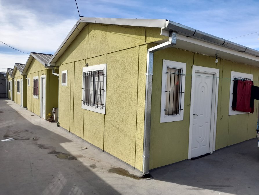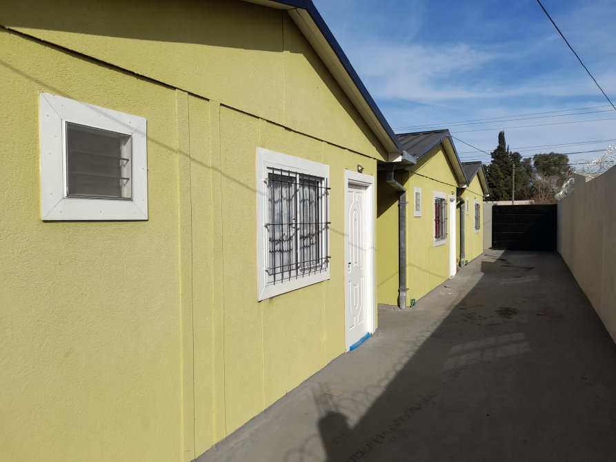 CON SUS PISOS CERAMICOS, TECHO DE CHAPA ACANALADA ATORNILLADAS Y LAS CANALETAS PARA DESAGUE, ABERTURAS VENTANAS DE ALUMINIO CON REJAS Y PUERTA DE ENTRADA ES DE CHAPA DOBLE INYECTADA.