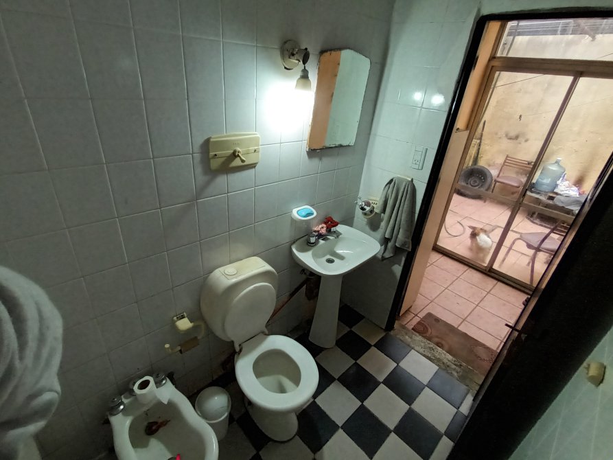 Baño completo con ducha; patio de 4,50 m x 2,50 m con conexión de lavarropas, Termo tanque y acceso desde el pasillo (doble entrada).
