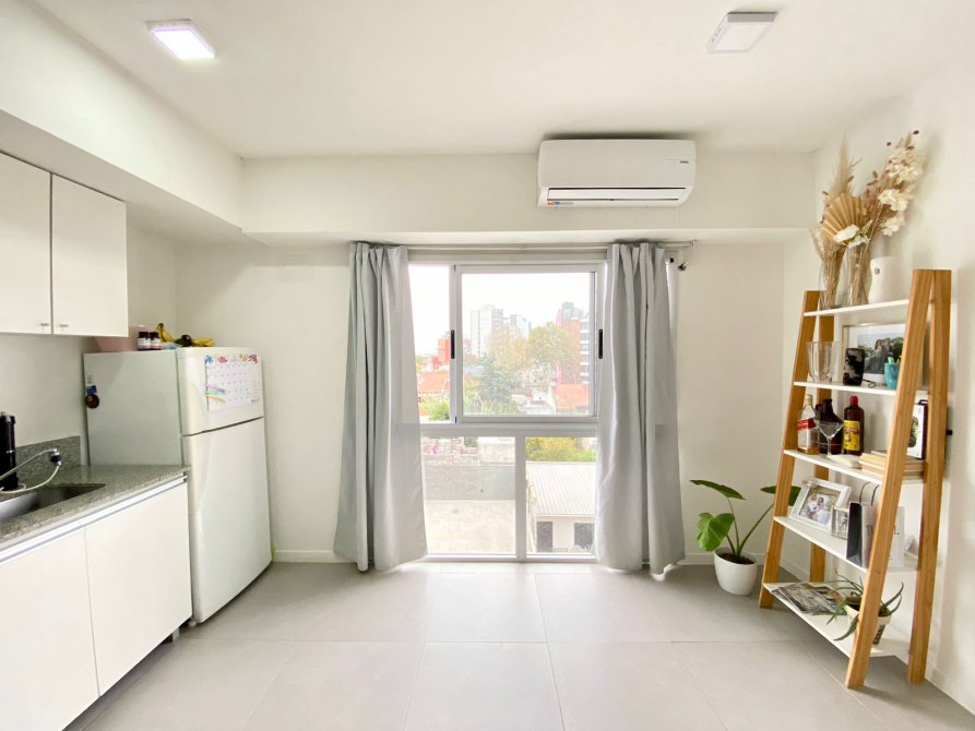El departamento está desarrollado en aproximadamente 50 m2, y está compuesto por: cocina-comedor integrados con amueblamiento de cocina completo, que posee gran ventanal que proporciona ventilación e iluminación natural; amplio baño completo con bañera; sector con conexión para el lavarropas; y, gran dormitorio con placard con interior completo también con gran ventana que proporciona ventilación e iluminación natural. El departamento cuenta con baulera; y posee servicios de luz, agua y gas.