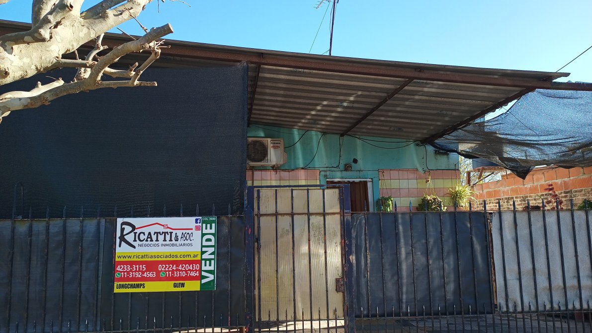 Ricatti & asoc vende una linda casa de 2 dormitorios, cocina, living comedor, baño, patio y atrás quincho más bases y paredes para un departamento o posible segunda casa más pequeña. a mts. del asfalto. a unas 10 cuadras de la estación de trenes de glew. Consultar por más información!