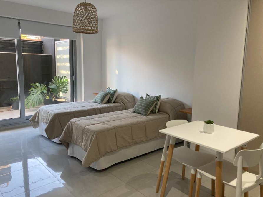 Departamento a estrenar en excelente ubicacion en la mejor zona de Adrogue ,muy luminoso al frente, dos somier de 80x 1,90 ,mesa con 2 sillas,cocina totalmente equipada,plancha para la ropa,secador de pelo,heladera,microndas,horno electrico,totalmente equipado hasta para 2 personas, baño completo,televisión por cable y wifi. Aire split frio /calor. Patio propio integrado. Todo incluido (Cable,Wifi,,Edesur,Expensas,Abl).Estadia minima 4 noches.Por estadias mas largas consultar.Capacidad maxima 2 personas. No se admiten mascotas.