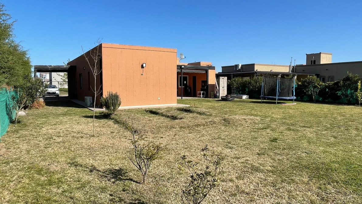 Hermosa propiedad desarrolla en una planta sobre lote de 800 m2. 4 ambientes. Cuenta con living comedor cocina incorporados, amplia galeria, parrilla y piscina de fibra. Tres dormitorios uno de ellos en suite. Hermosos baños y vestidor. Entrada vehicular. Barrio muy tranquilo y con excelentes accesos al centro de Canning.