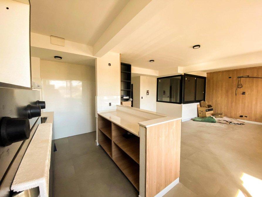- Cocina totalmente equipada, con mesada de granito, bacha de acero, muebles en melamina, bajos y alacena, con accesorios y herrajes de primera línea. Artefacto de cocción, cocina y purificador de acero inoxidable, primera marca. Grifería mono comando. Pisos de porcelanato.