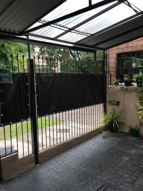 Entrada para un auto con portón corredizo automatizado.