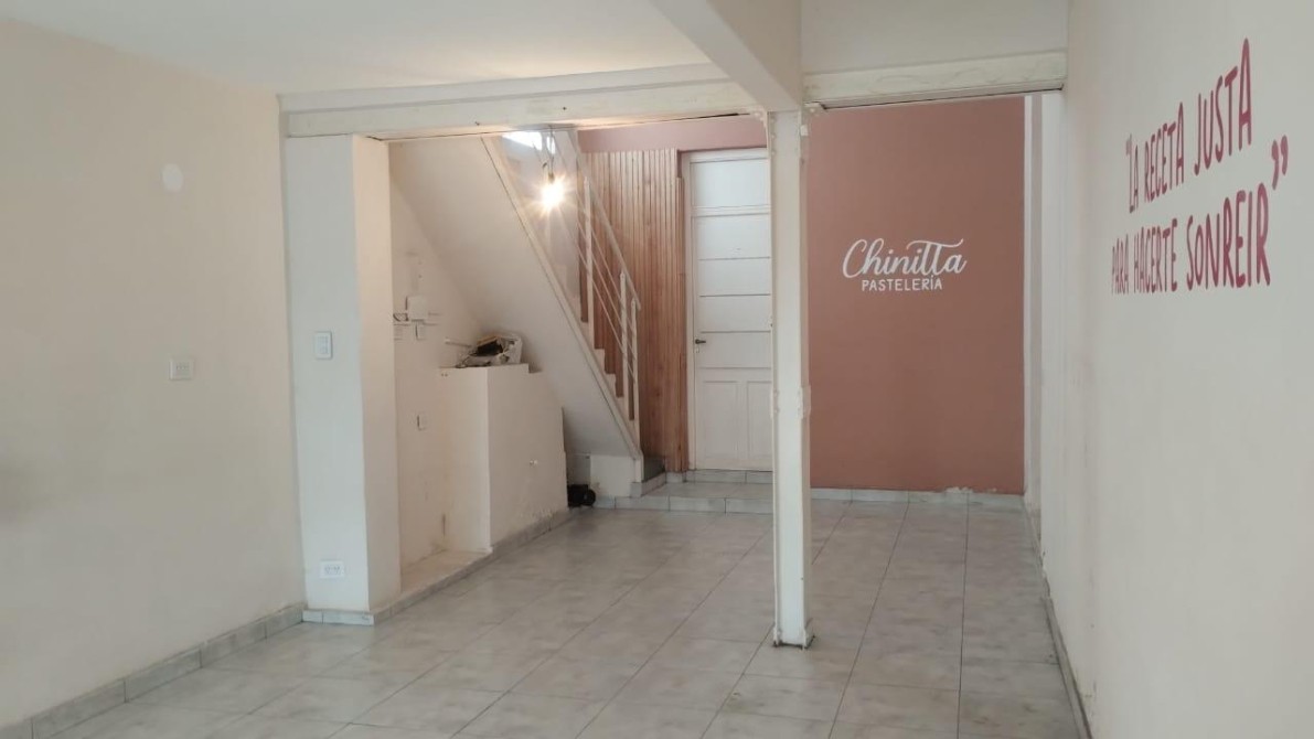 Vidriera c/rejas al frente - En Planta Baja Salón de ventas de 4 x 8, sector baño y cocina + Entrepiso de 4 x 5 c/piso de pinotea y ventana a la calle + Terraza libre (impermeabilidazada)