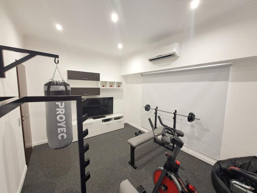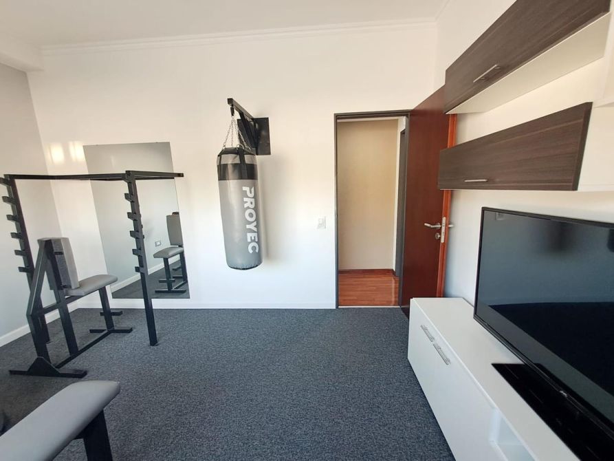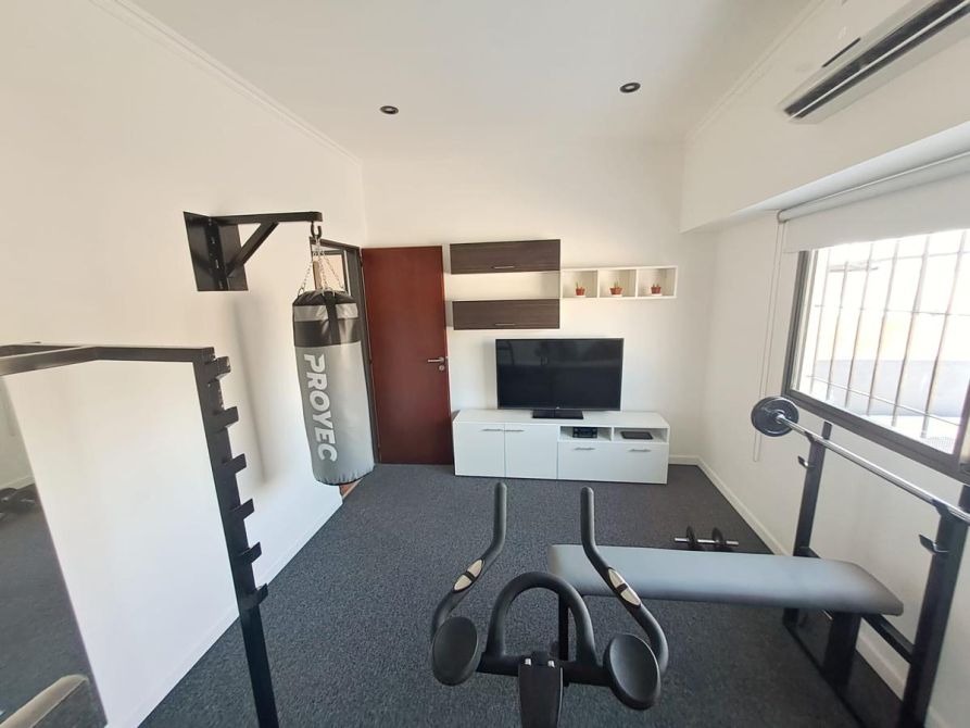 - Una cuarta habitación, en la cual actualmente está instalado un gimnasio, la misma también con alfombra, cortina black out y split.