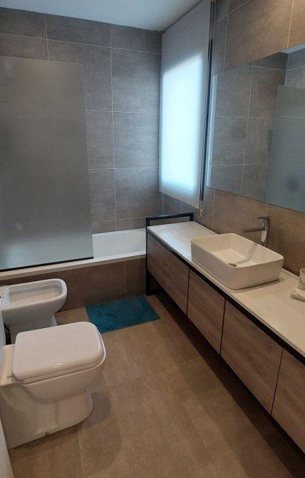 Pisos y baños revestidos con porcelanato de alta calidad.