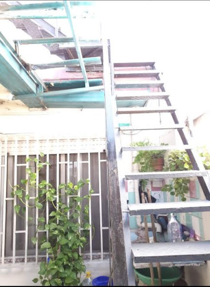 Patio de 2,40 metrso por 6,20 metros con toldo y escalera de acceso a la segunda unidad