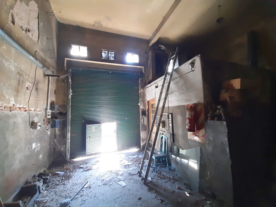 PLANTA BAJA: GALPÓN 218M2, 1 OFICINA, BAÑO, VESTUARIO, PERSIANA CON PUERTA DE ESCAPE.