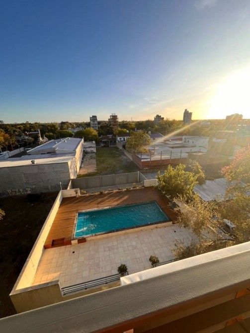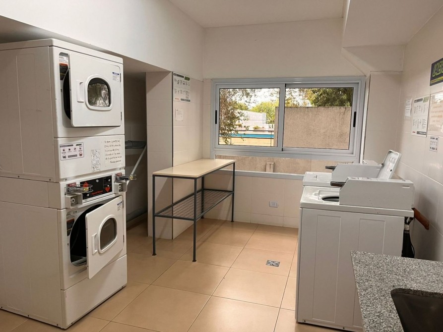 El edificio cuenta con agua caliente por caldera, SUM, laundry, estacionamiento (de pago), y piscina con solarium