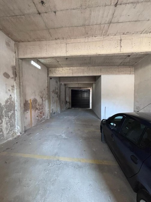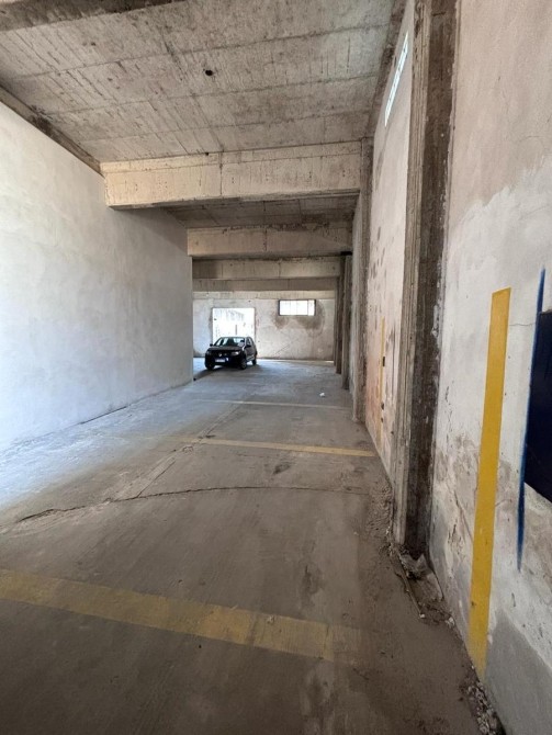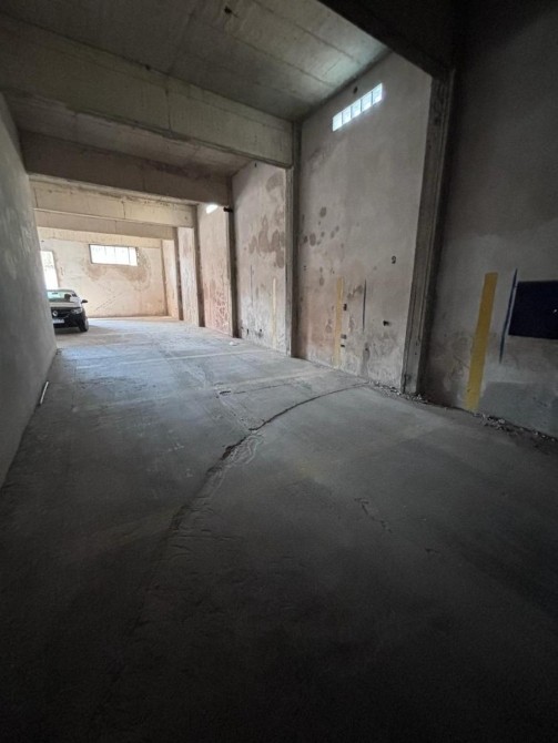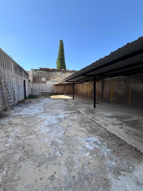 Galpón con portón de ingreso ciego, techo de losa y piso de hormigon.