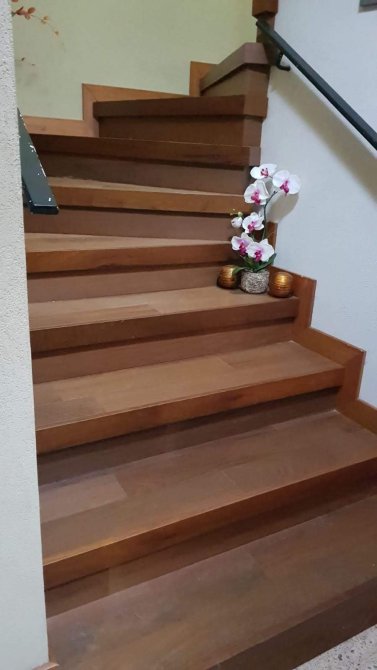 P.A: Escalera revestida en madera.