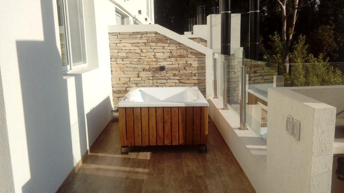 El complejo cuenta con departamentos de mono, dos y tres ambientes. Introduciéndonos en cada uno de los niveles lo separa con el interior de cada departamento un amplio palier, la escalera de servicio en la cabecera y las puertas de madera de cada unidad funcional. A su vez, posee una amplia terraza privada con una hermosa pérgola, un hidromasaje y parrilla.