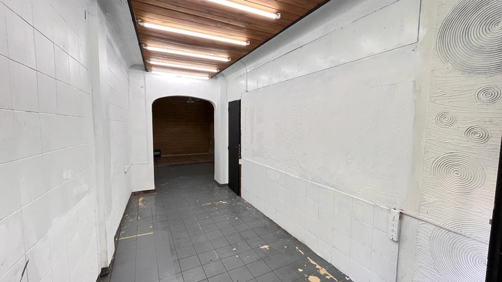la vidriera es mas ancha aprox 3m se angosta el local a 2,5 aprox y a los 3 m3tros se vuelve a ensanchar.