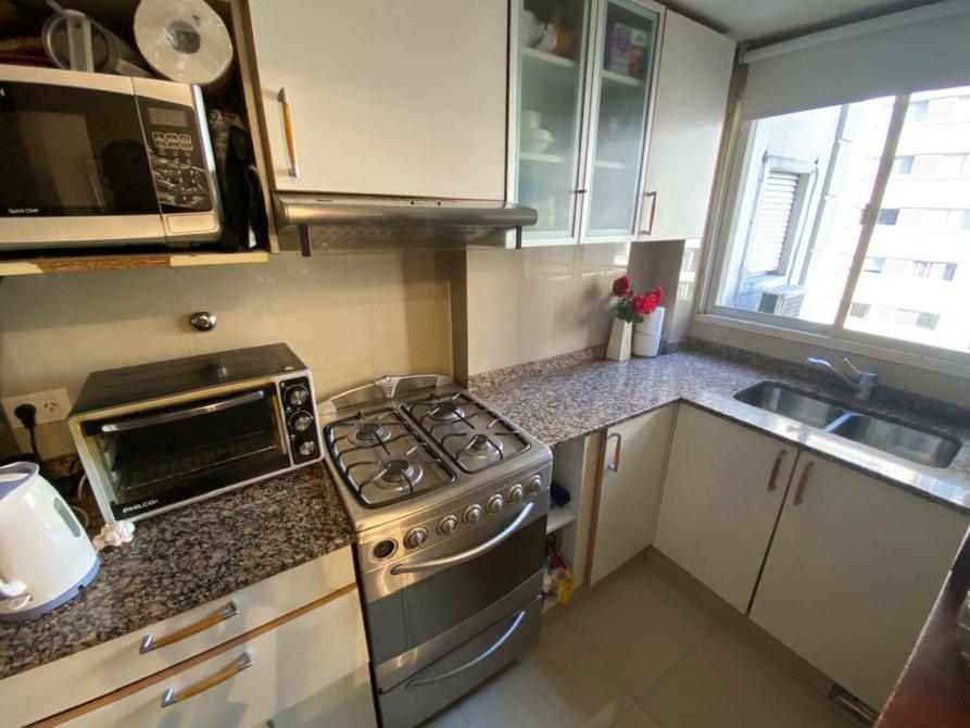 Cocina separada por puerta, mueble de bajo y sobre mesada.