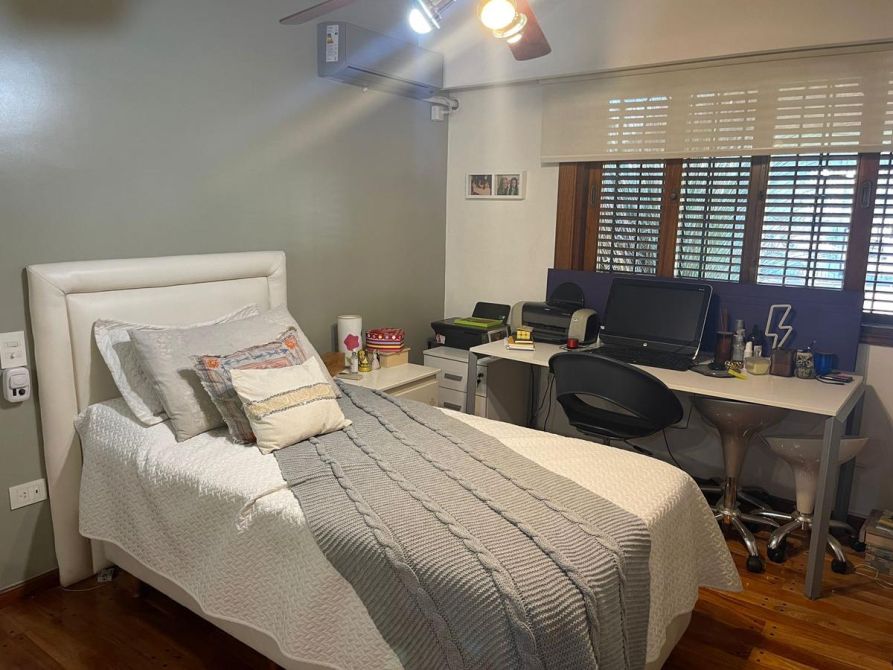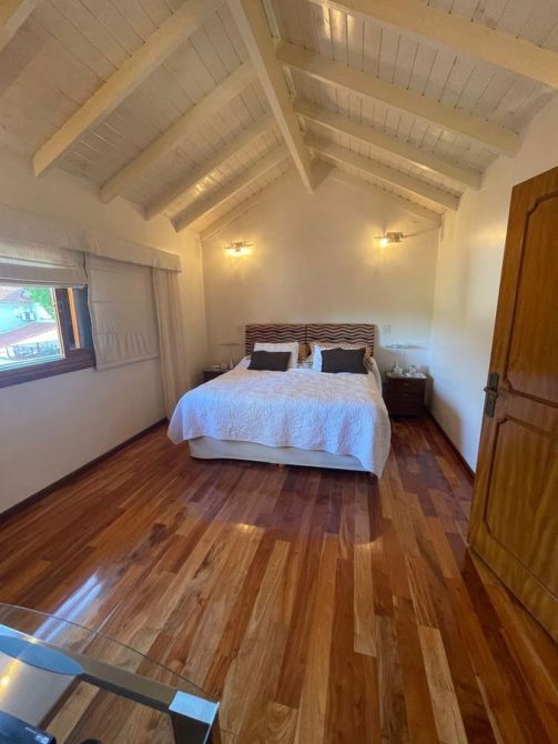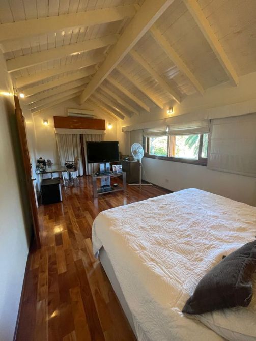 Planta Alta: dormitorio en suite con vestidor,  antebaño con doble bacha y amplio jacuzzi con ducha independiente. Desde el cuarto se puede apreciar una hermosa vista a una terraza la cual se comunica directamente con el  parque.   Garage para 3 vehículos, cuarto de guardado.