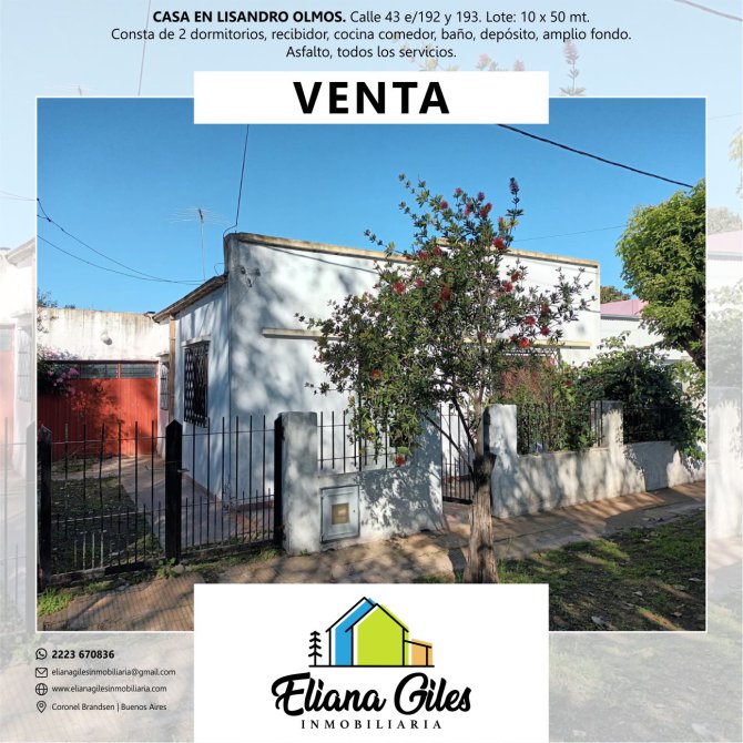 La propiedad CASA CON TODOS LOS SERVICIOS. LISANDRO OLMOS, LA PLATA ya no está disponible