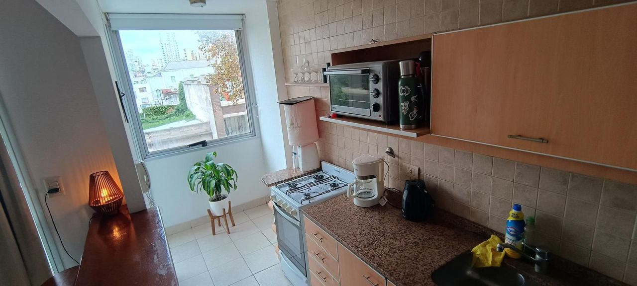 Departamento de 2 ambientes. Consta de living comedor, semi-integrado a la cocina, con barra desayunadora. Puerta balcón, con balcón al frente. Dormitorio con estufa y baño completo. Consta en toda la unidad con piso flotante.