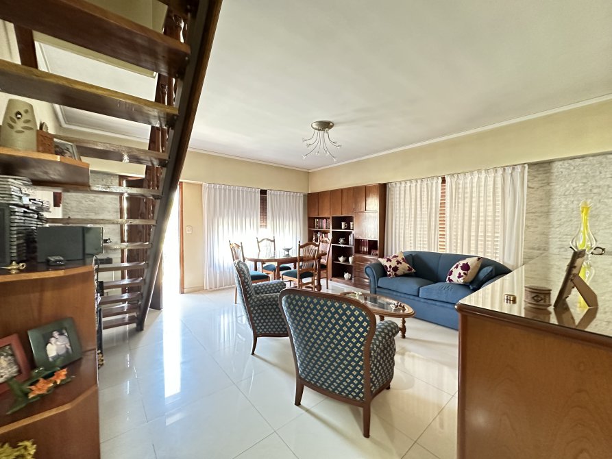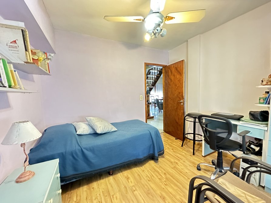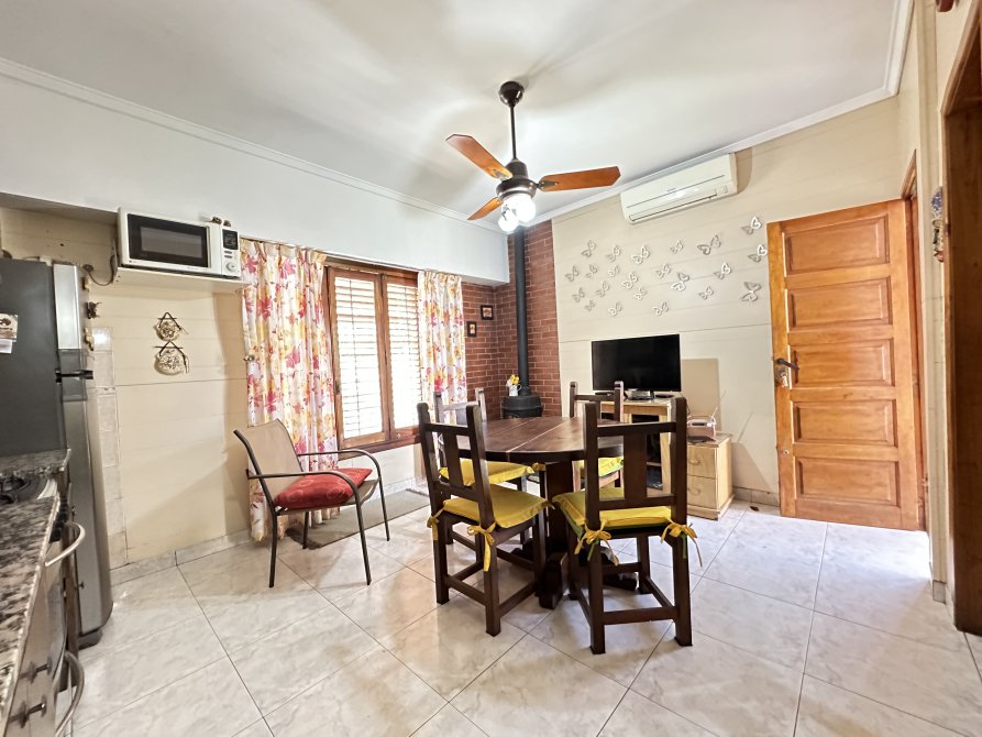 En la planta baja cuenta con: jardín al frente con rejas, amplio living-comedor con pisos de porcelanato y sus aberturas en madera de alta calidad; dos dormitorios con pisos flotantes, uno al frente y otro al contrafrente; baño completo; cocina-comedor independiente con muebles de alto y bajo mesada; lavadero cubierto con conexión para lavarropas; jardín y patio; garage con capacidad para dos vehiculos de gran tamaño; y quincho completo con entrada independiente desde la calle con cocina y baño completo o posible departamento de 2 ambientes. En la planta alta cuenta con un dormitorio con placard y un cuarto de guardado.