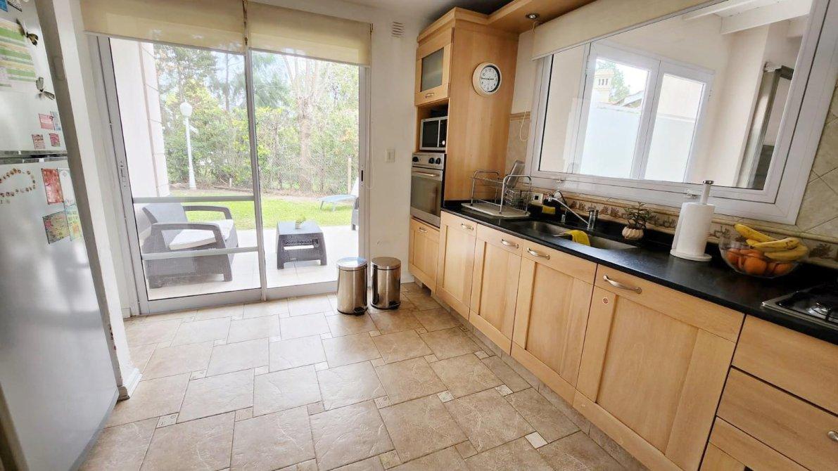 PB: Hall de recepcion, toilette, amplio living con hogar, cocina equipada con comedor diario integrado. Un dormitorio o escritorio con baño privado y acceso independiente desde el exterior. Quincho con parrilla en acero inoxidable. Garage cerrado para 2 autos.