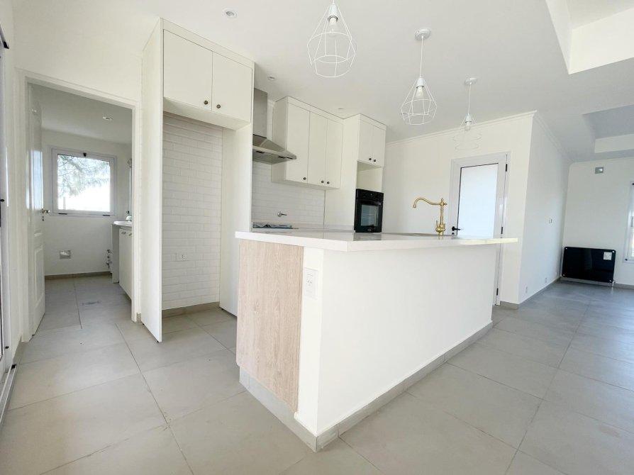 Hall de recepción, muy amplio living comedor con salida a galería, cocina integrada con isla, alacenas y bajo mesada, gran despensa o escritorio, lavadero con salida independiente. Dos cómodos dormitorios con placard, baño completo. Dormitorio principal en suite con amplio vestidor y baño completo, vista al jardín.