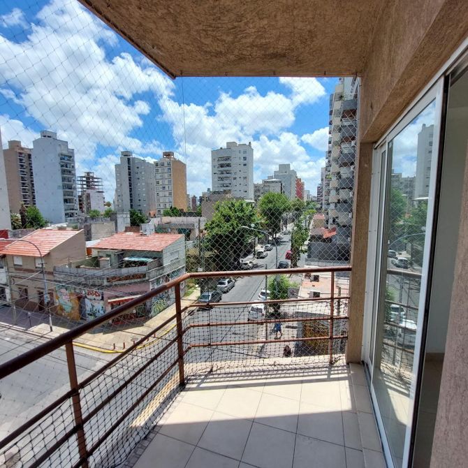 Piso 3 ambientes en edificio al frente, compuesto de: Amplio living comedor, baño completo, cocina con isla, horno y anafe, con mesada y amoblamiento. Dormitorio Principal con placard con interiores, baño en suite y balcon. Segundo Dormitorio con placard con interiores. Con cochera.