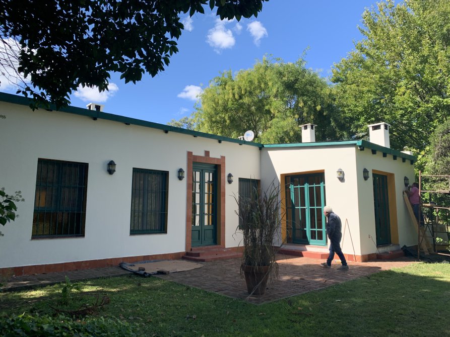 Casa principal: amplia galeria, living-comedor, cocina, baño completo, una habitación en suite, estar con estufa hogar y parrilla.