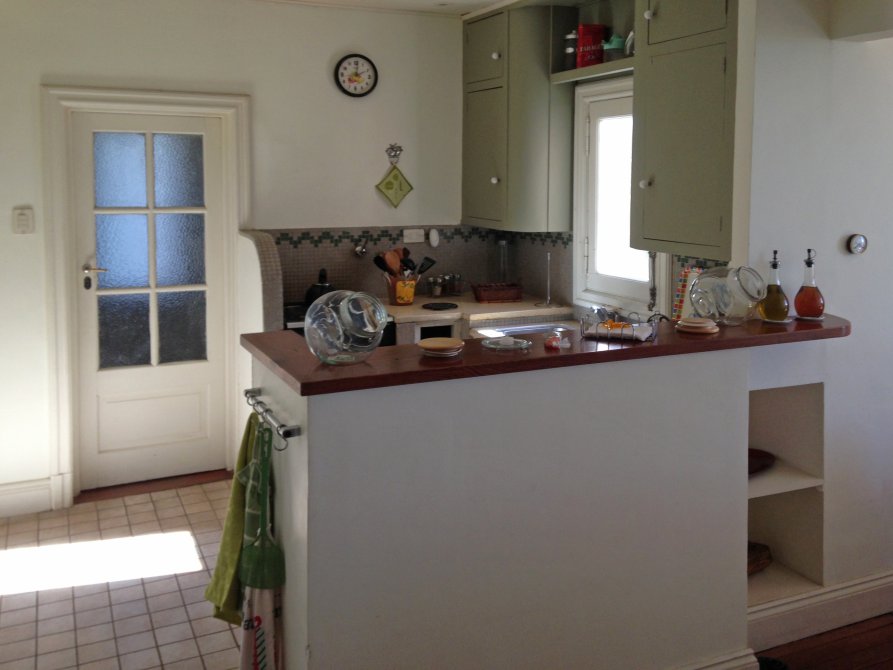 Casa de huéspedes: dos habitaciones, baño. cocina-comedor, living con estufa hogar.