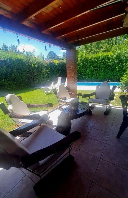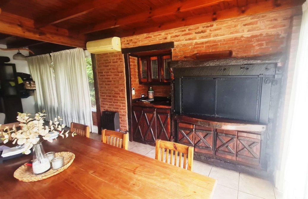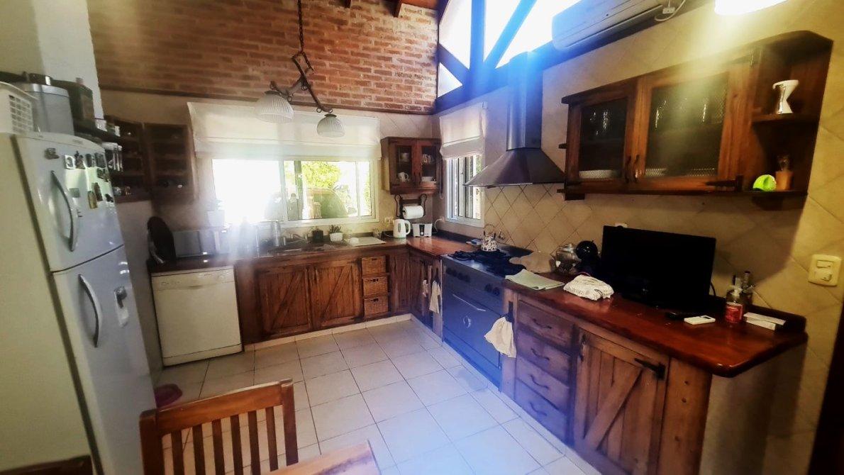 La cocina, cuenta con una moderna cocina industrial y un cómodo comedor diario. Además, la casa cuenta con un quincho cerrado equipado con un acogedor living y una amplia mesa para 12 comensales. En el quincho también encontramos una parrilla con fogonero y un frente de hierro, perfecto para disfrutar de deliciosos asados en cualquier momento del año.