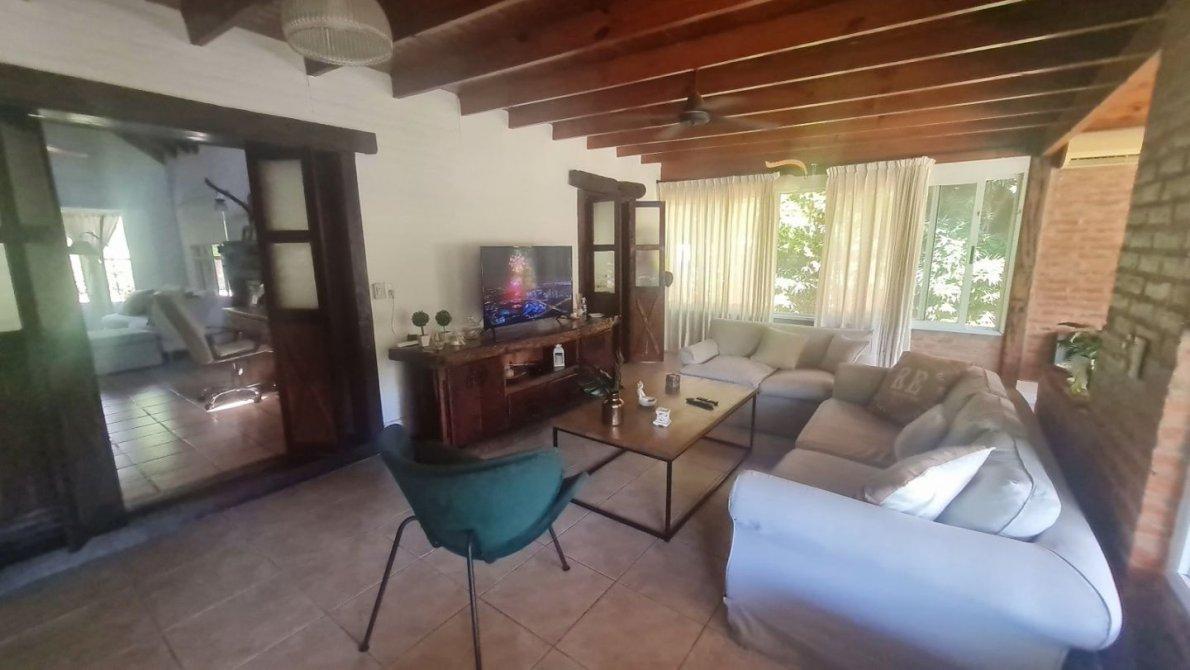 Esta hermosa casa se encuentra distribuida en una planta, brindando comodidad y funcionalidad. Con una superficie cubierta de 300m2 y 60m2 semicubiertos, la propiedad está construida con doble pared de ladrillos y cámara de aire, sobre un generoso lote de 600m2.