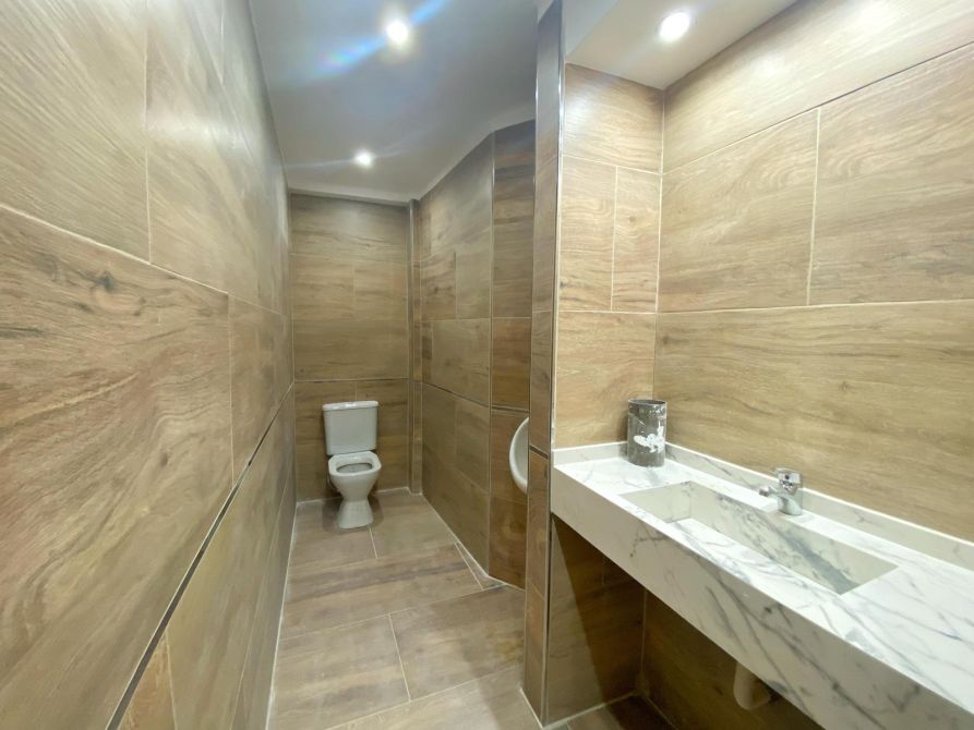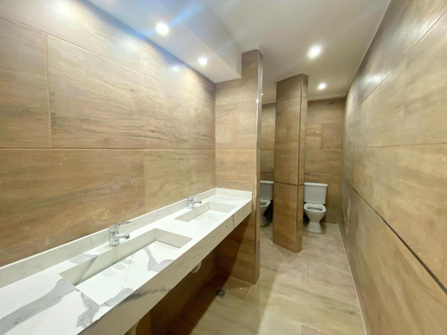 - Los baños modernos, cuentan con bachas de marmol y porcelanato?? en sus superficies, tanto el de damas como el de caballeros.