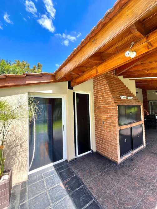 GALERIA/QUINCHO SEMI CUBIERTO ESPACIOSO, PARRILLA CON FRENTE DE ACERO INOXIDABLE Y BARRA.