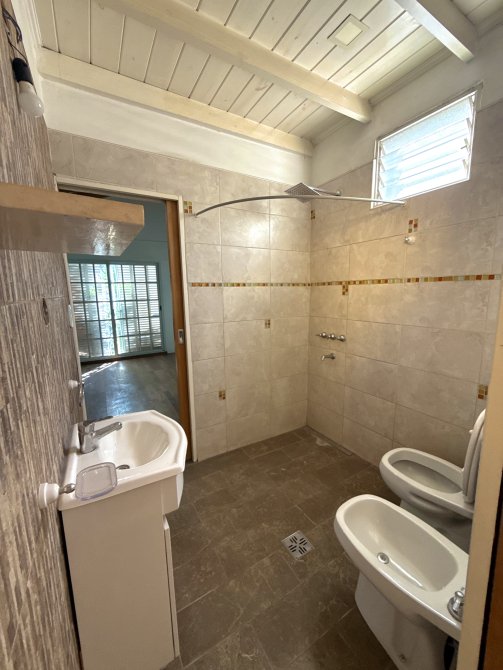 Baño completo compartido, con acceso independiente desde ambas habitaciones, lo que lo convierte en un espacio funcional y de uso práctico para la familia.